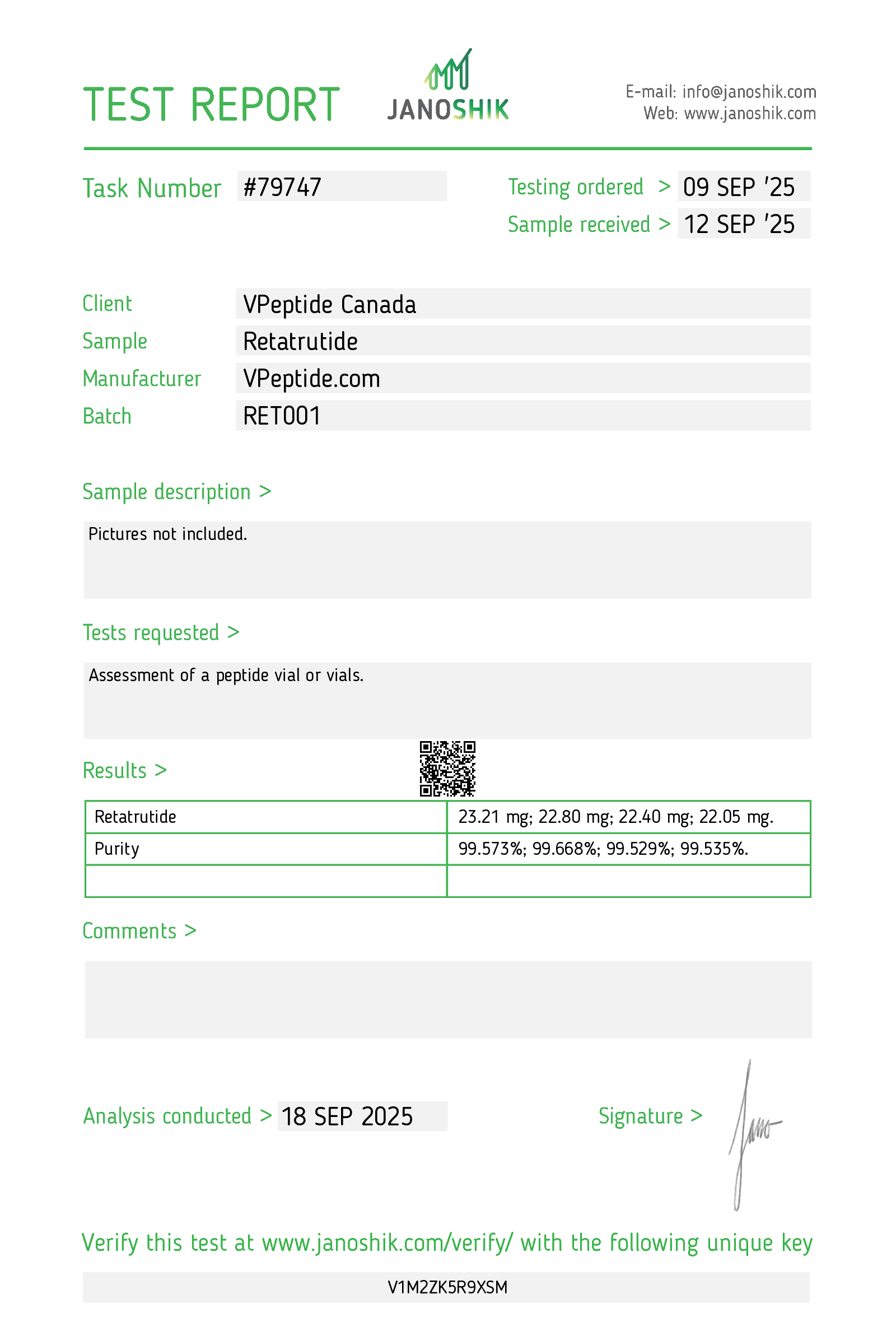 https://verify.janoshik.com/tests/79747-Retatrutide_V1M2ZK5R9XSM – September 18 2025